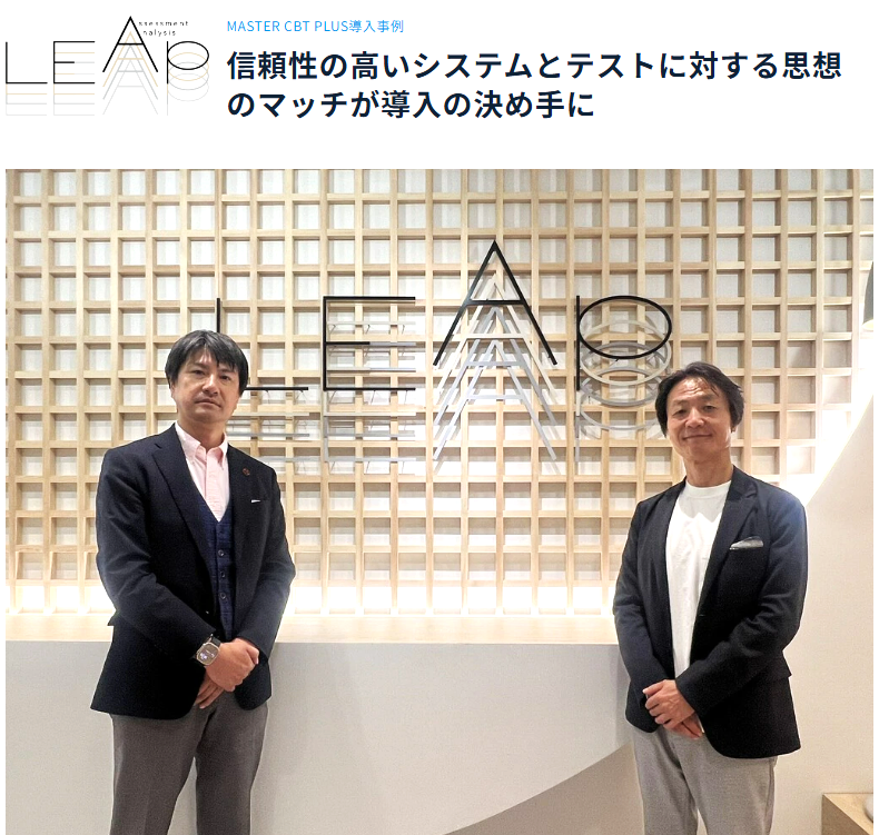 弊社サービスにおいてオンラインテストシステム・MASTER CBT PLUSを採用し、カスタマイズしたシステムの活用が評価され、株式会社イー・コミュニケーションズのホームページ内に「導入事例」として紹介されました。