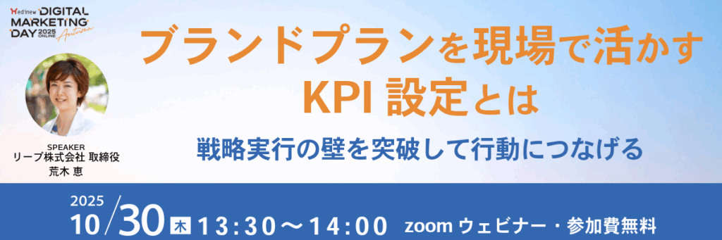 当日は「ブランドプランを現場で活かすKPI設定とは~戦略実行の壁を突破して行動につなげる~」と題し、「戦略を伝えても動かない」という課題を取り上げ質重視のKPI設計について提案させていただきます。オンラインウェビナーとなります。ぜひ、皆様のご登録をお待ちしております