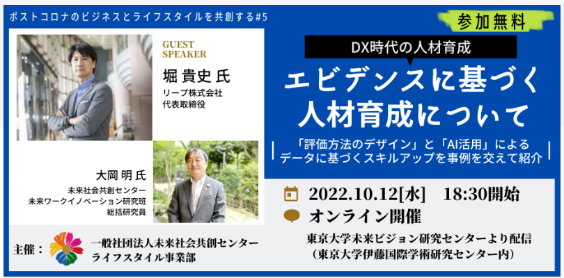 東京大学未来ビジョン研究センター内に開設されている、未来社会共創センターライフスタイル事業部門主催のオンライン研究会にて、弊社・代表取締役の堀が講演いたします。
