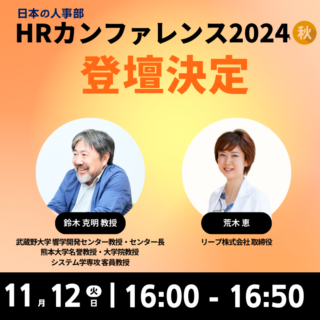2024年11月6日~14日に開催される、人・組織の課題解決策を体系的に学べるHRイベント「HRカンファレンス2024-秋-」にて...