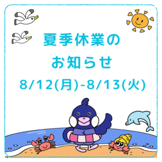 誠に勝手ながら、リープでは下記の期間を夏季休業とさせて頂きます。 2024年8月12日(月)~8月13日(火) 2023年8月14...